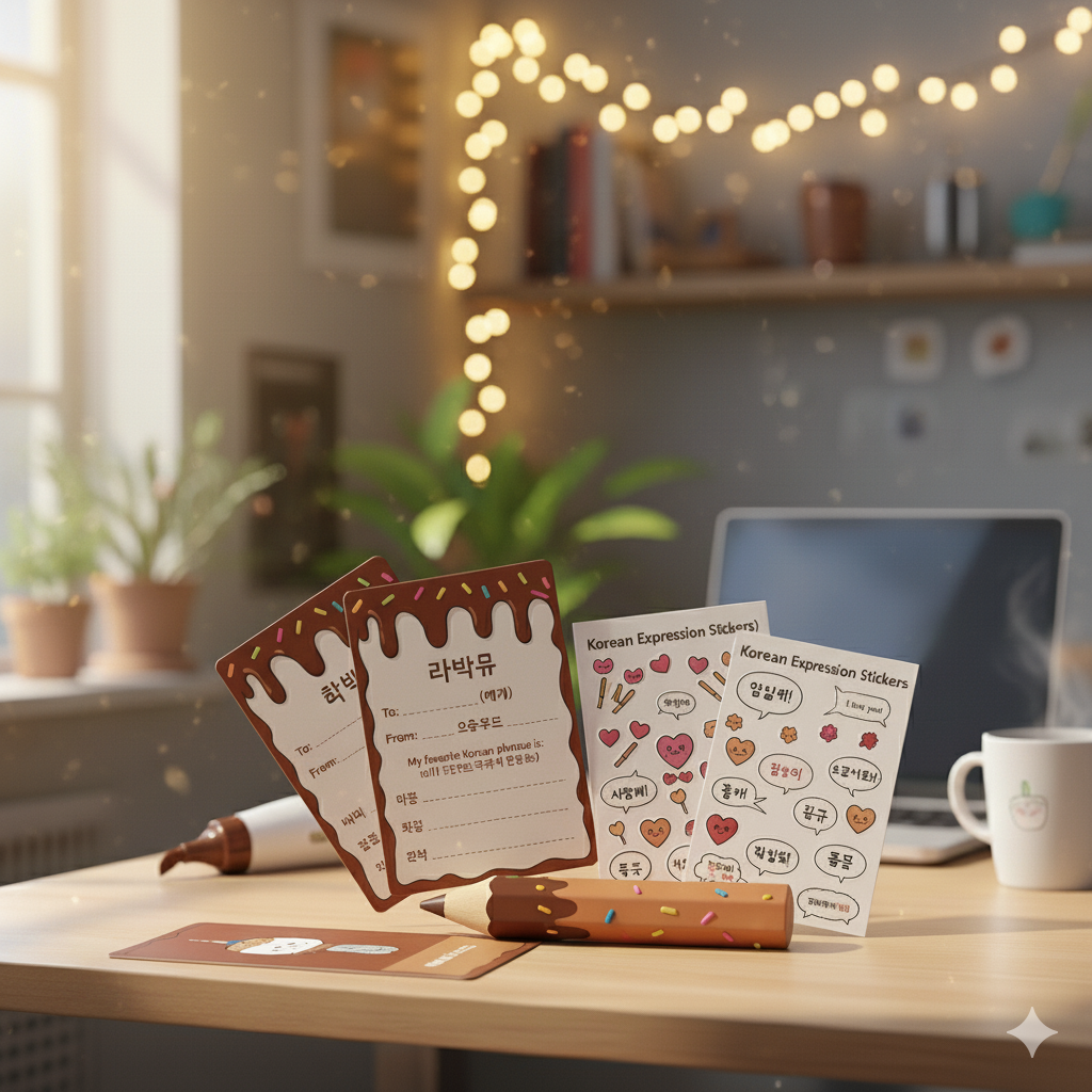 At the heart of the kit is a phrase book featuring simple Korean expressions for giving and sharing Pepero. The phrases are practical, easy to understand, and perfect for learners to practice polite language, greetings, and social expressions. Using the phrases in real-life contexts, such as gifting Pepero to friends, helps learners build confidence in speaking and understanding Korean.