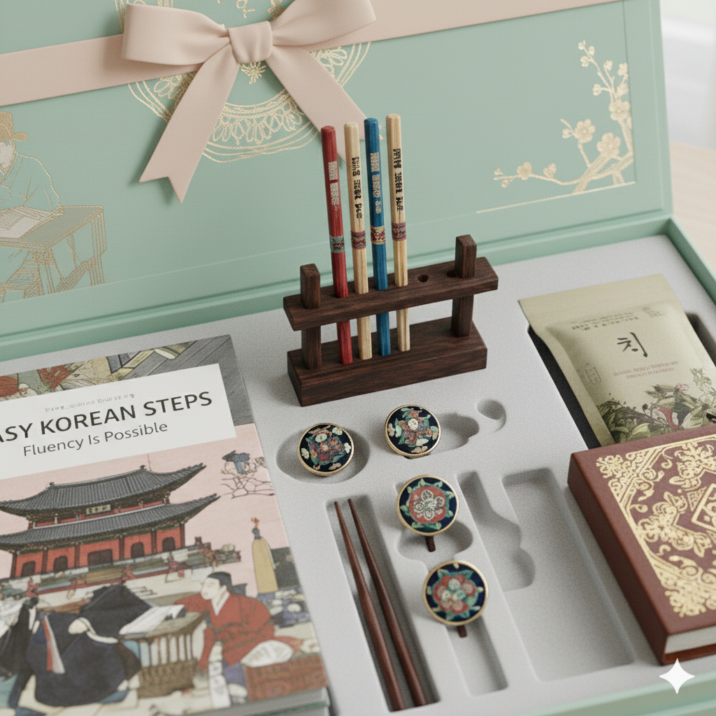 Even with simple tools, this minimal yet effective kit encourages learners to focus on the essentials: writing, recognizing characters, and getting comfortable with Korean in a hands-on, interactive way ✨.