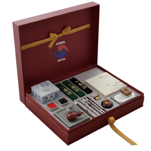 The kit also includes calligraphy brushes and a ceramic ink holder, designed for smooth, expressive strokes while practicing Korean writing. Practicing with authentic tools helps learners understand the proper techniques of brush writing, improving fine motor skills and reinforcing memory through tactile engagement. Writing Korean characters by hand fosters a deeper appreciation for the form and beauty of each character, combining skill development with mindfulness.